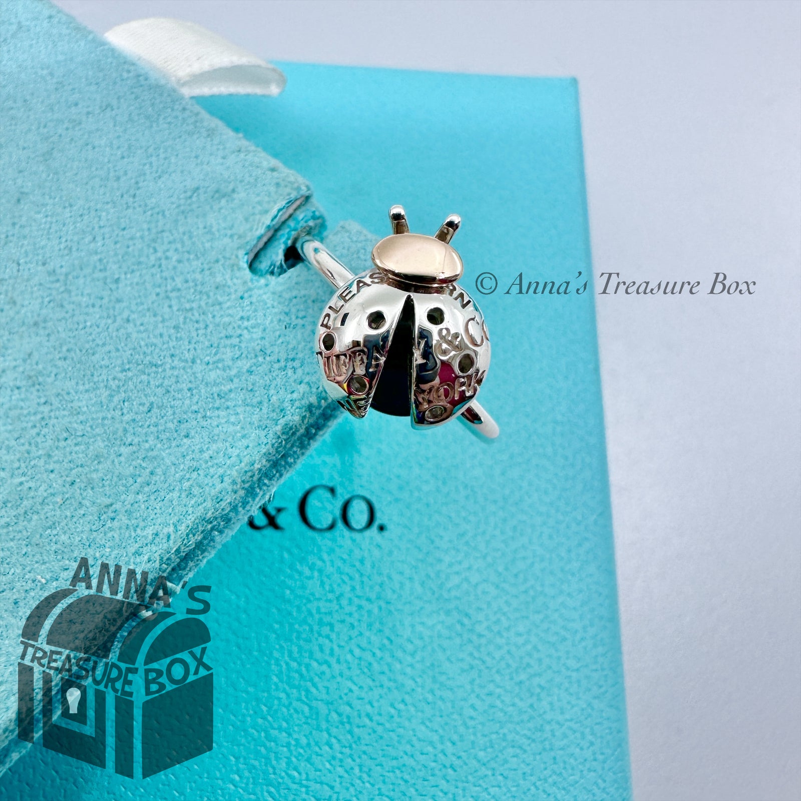 This is an authentic Tiffany & Co. 925 silver and 18K rose gold love bug collection ladybug ring.