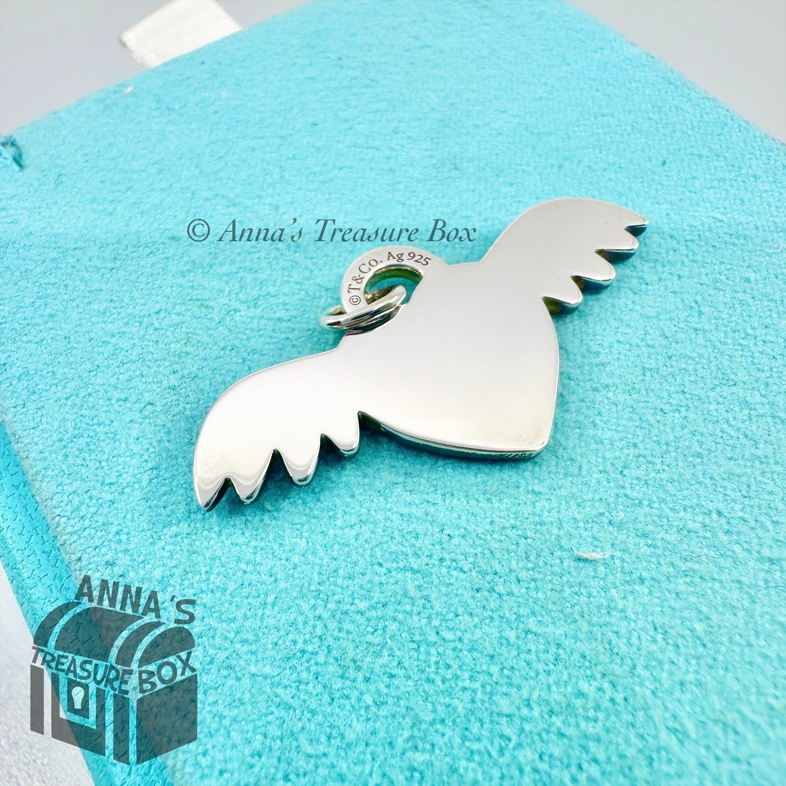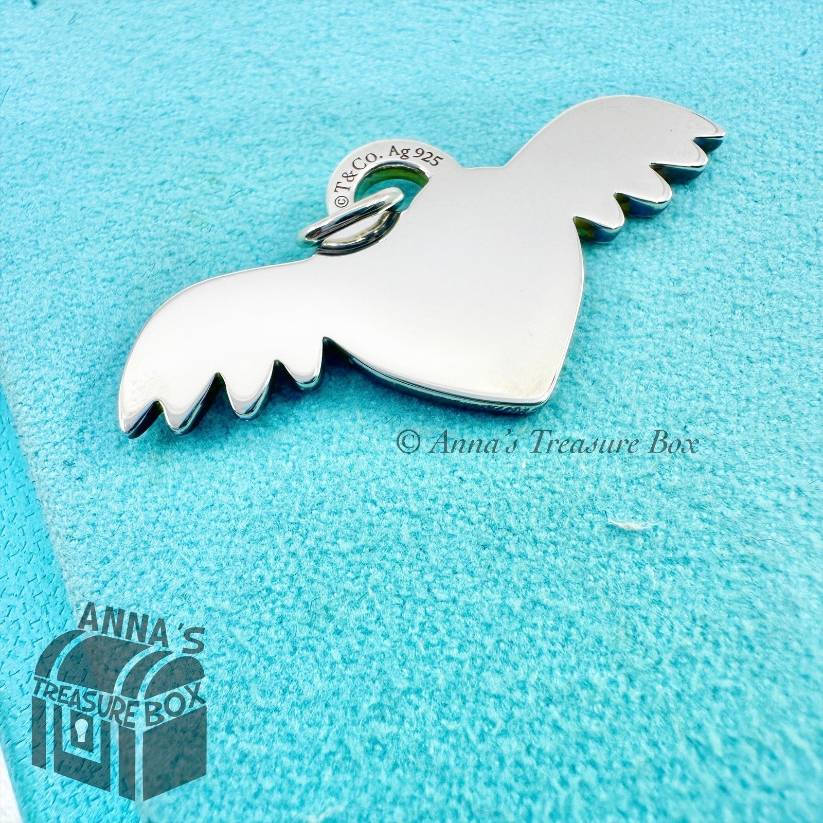Return To Tiffany & Co. 925 Silver Angel Wings Heart Charm Pendant (box, pouch)