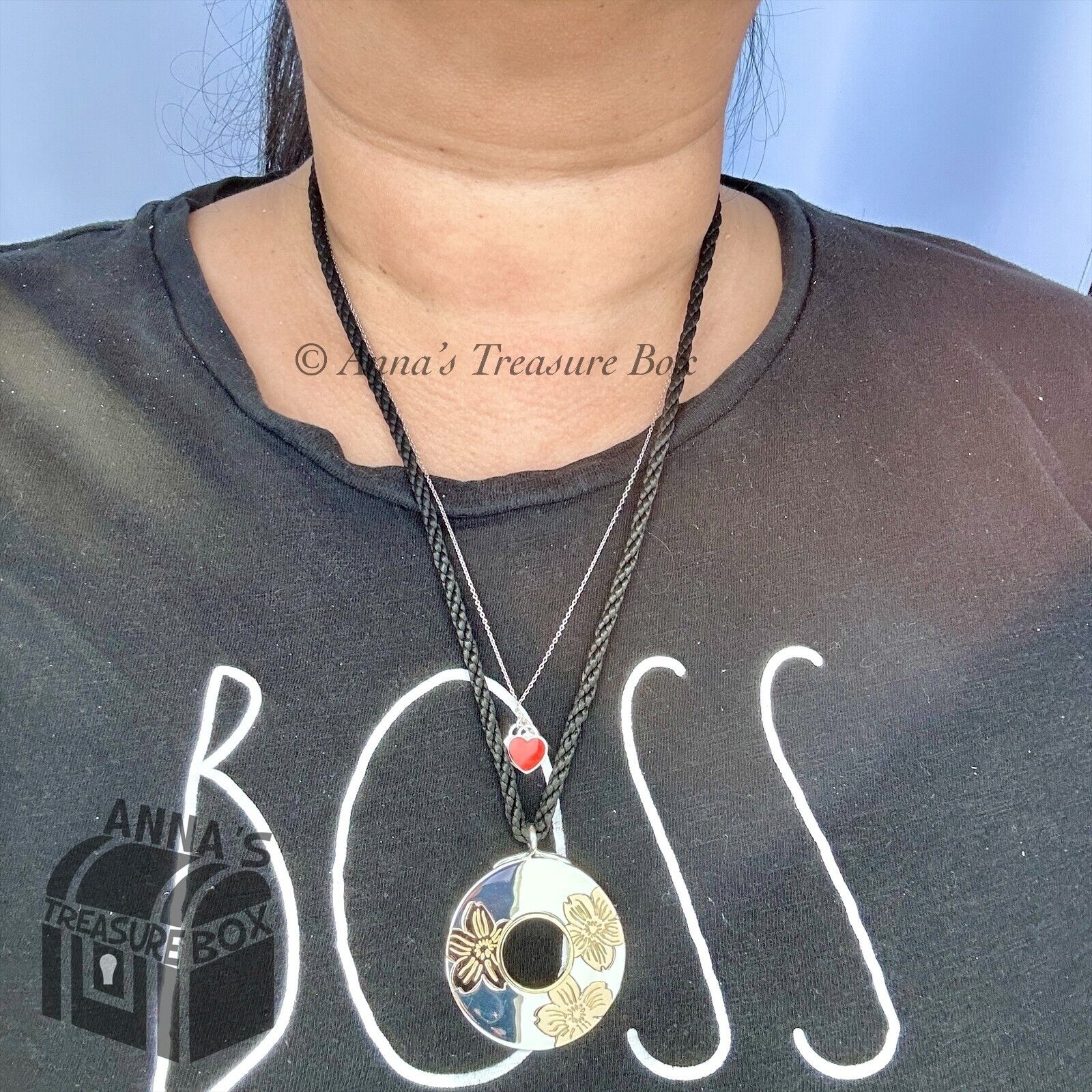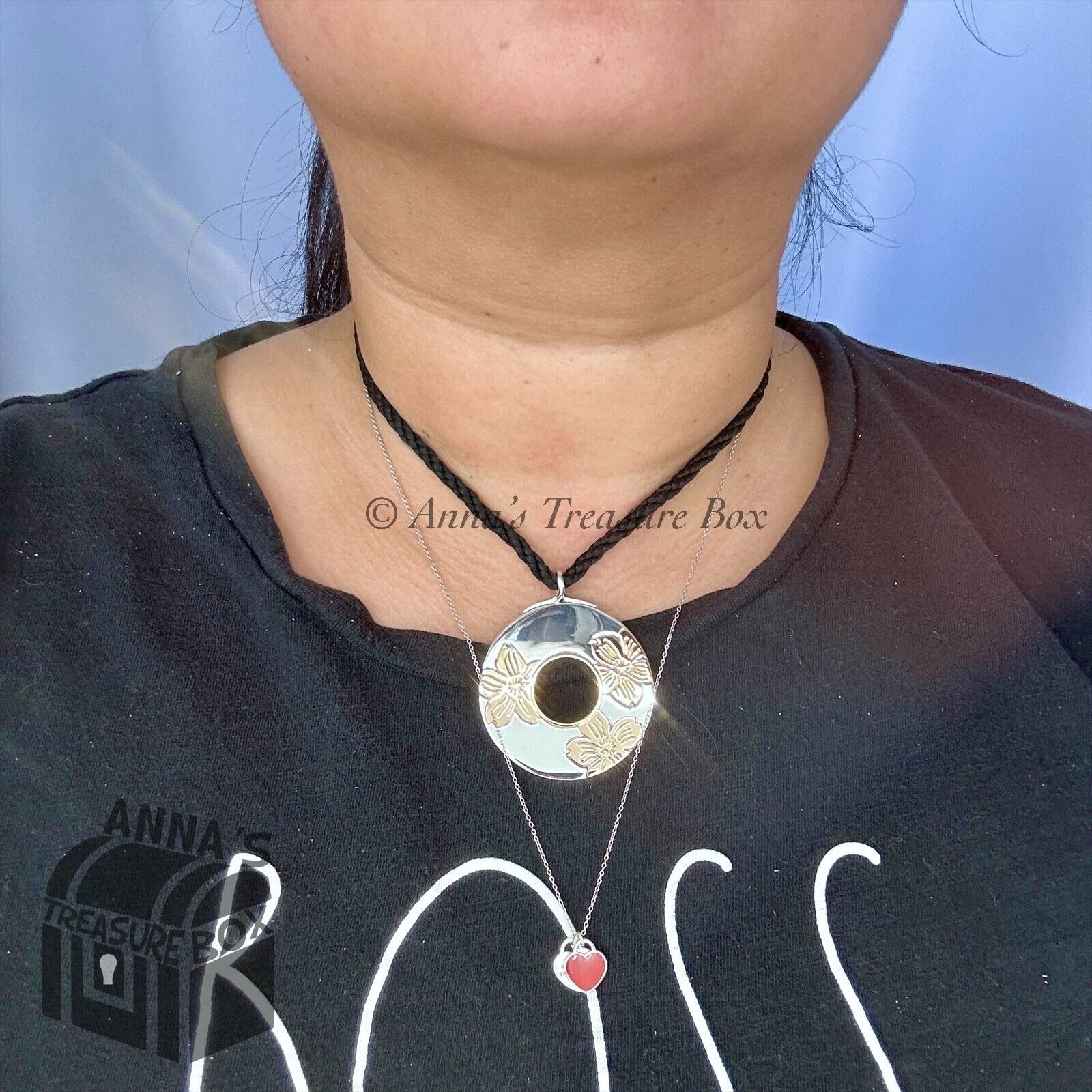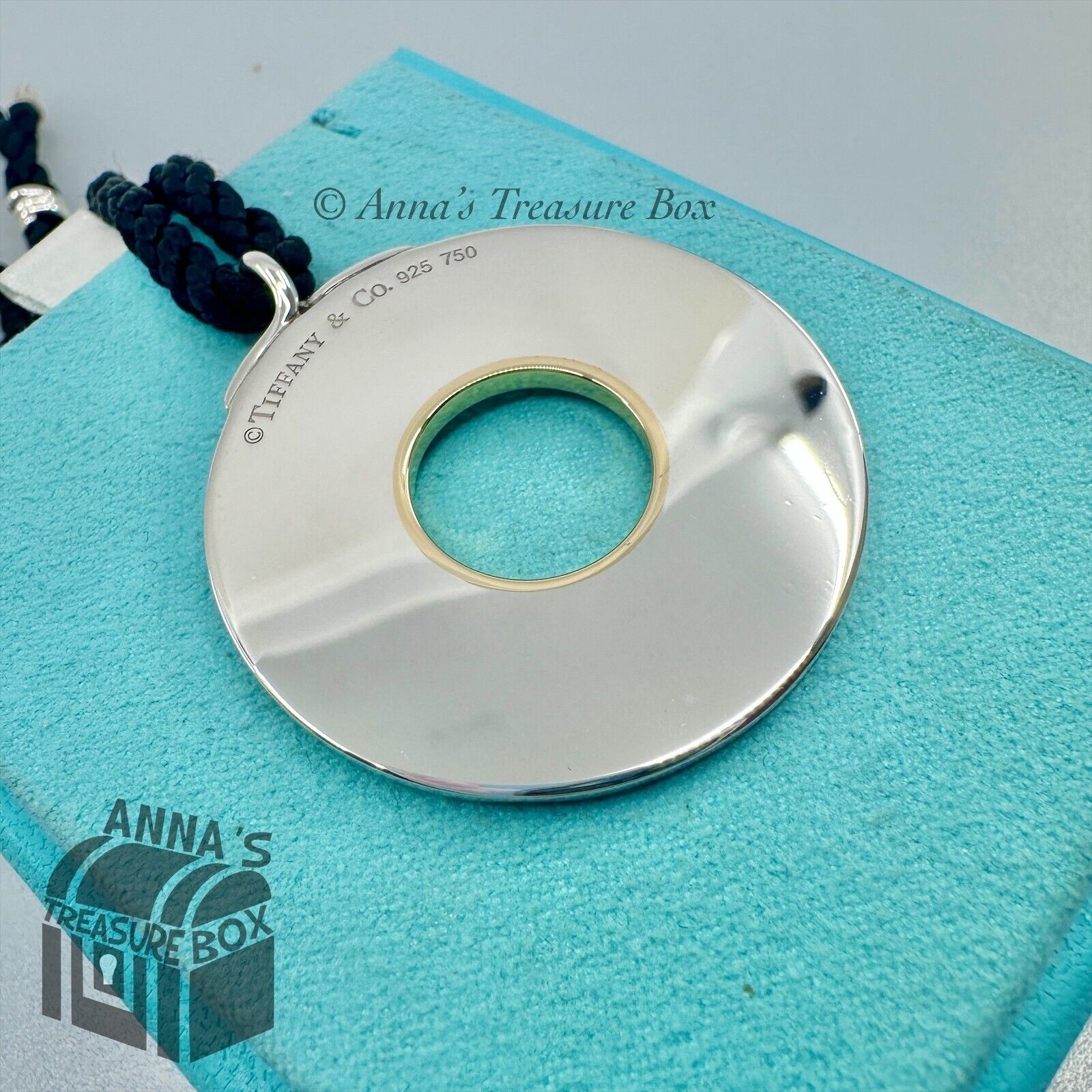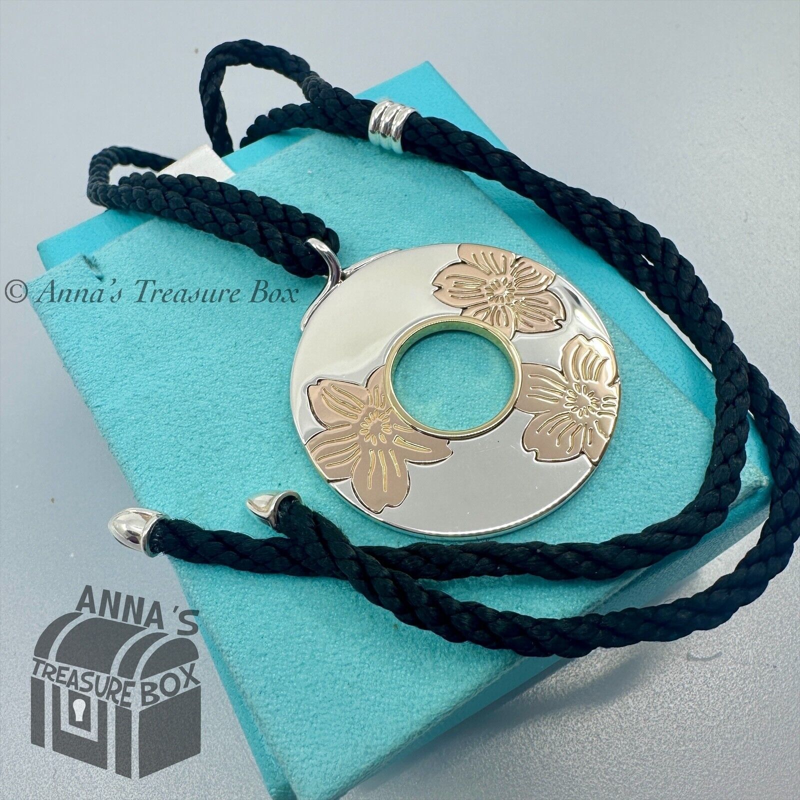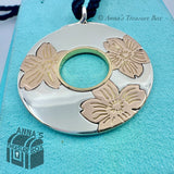 Tiffany & Co. 925 Silver & 18k Gold Flowers 43mm Circle Pendant 29" Necklace