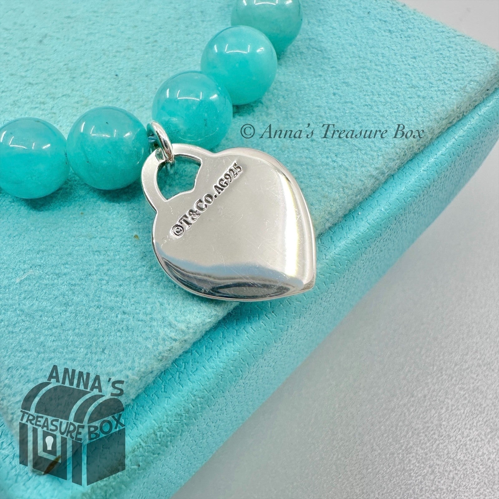 This is an authentic Tiffany & Co. 925 silver RTT heart tag 8mm Amazonite bracelet.