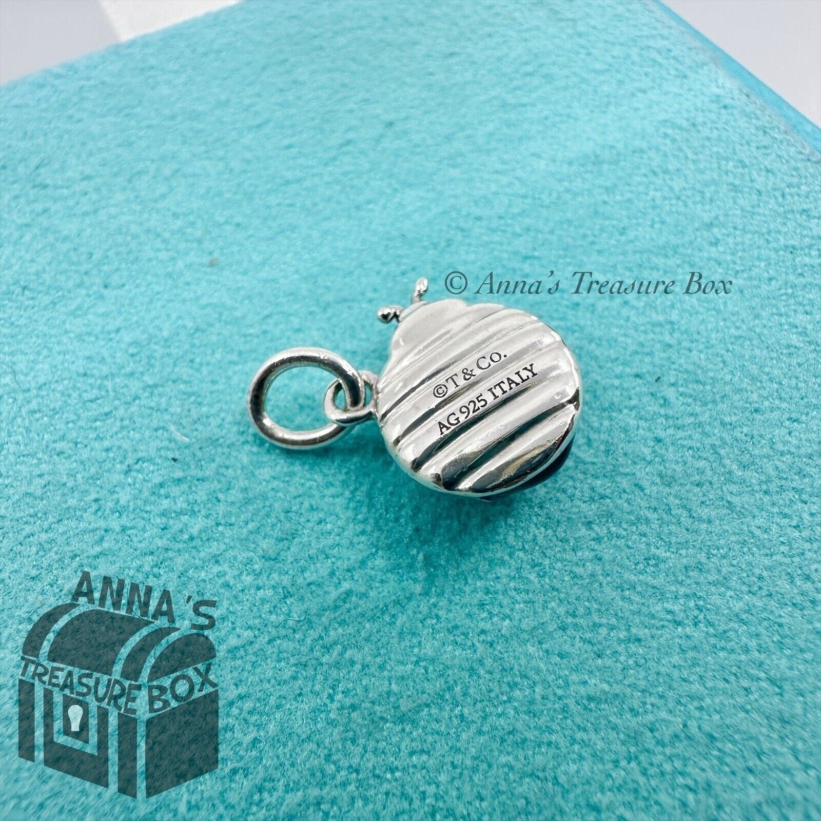 Tiffany & Co. 925 Silver Blue Enamel Ladybug Charm Pendant (box, pouch, ribbon)