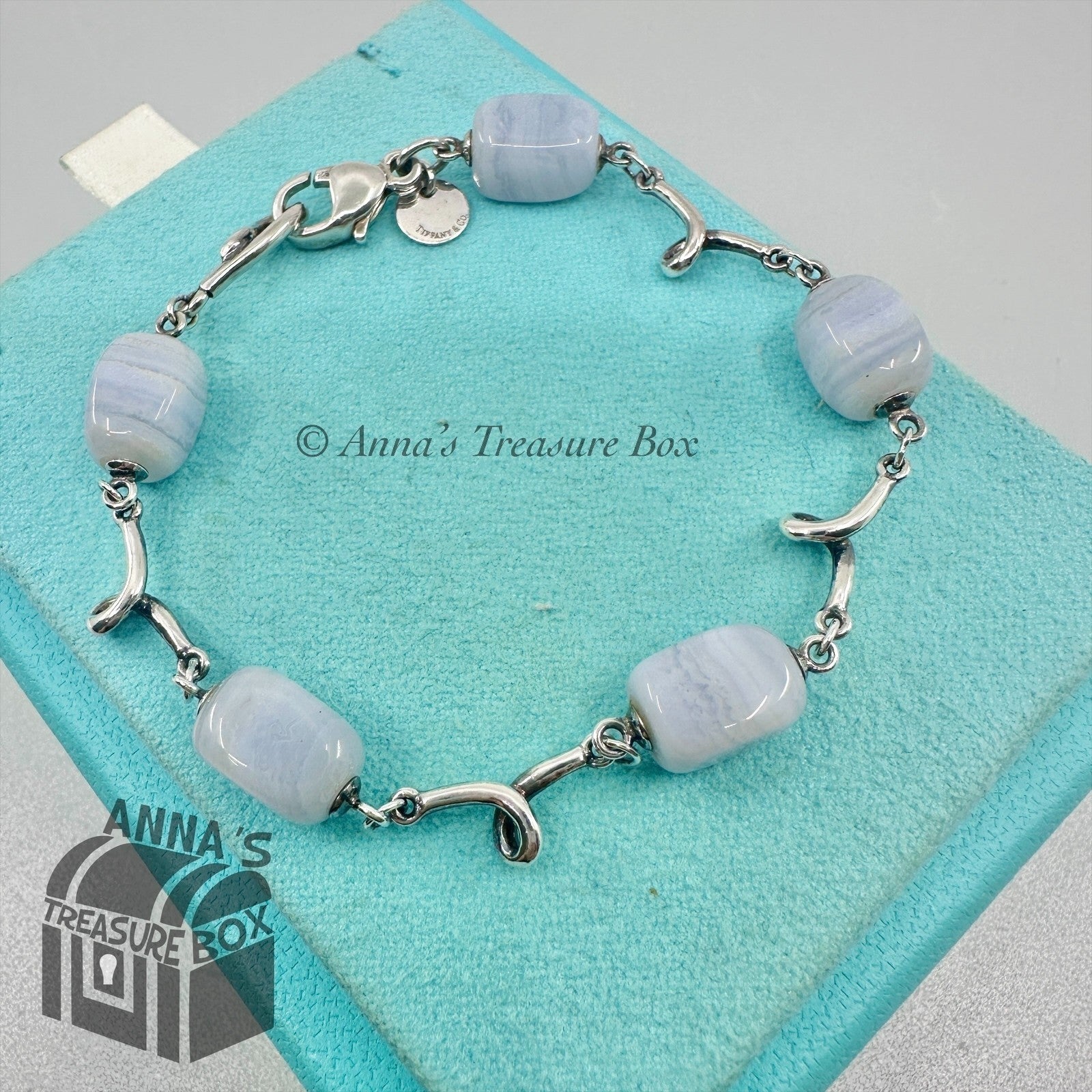 Tiffany & Co. 925 Silver & Blue Lace Agate Twist 7.5" Bracelet (pouch)