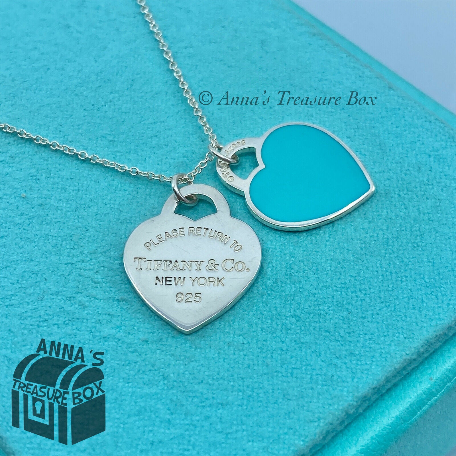 Tiffany & Co. 925 Silver Blue SMALL RTT Hearts 16 -18" Necklace (bx, pouch, rbbn
