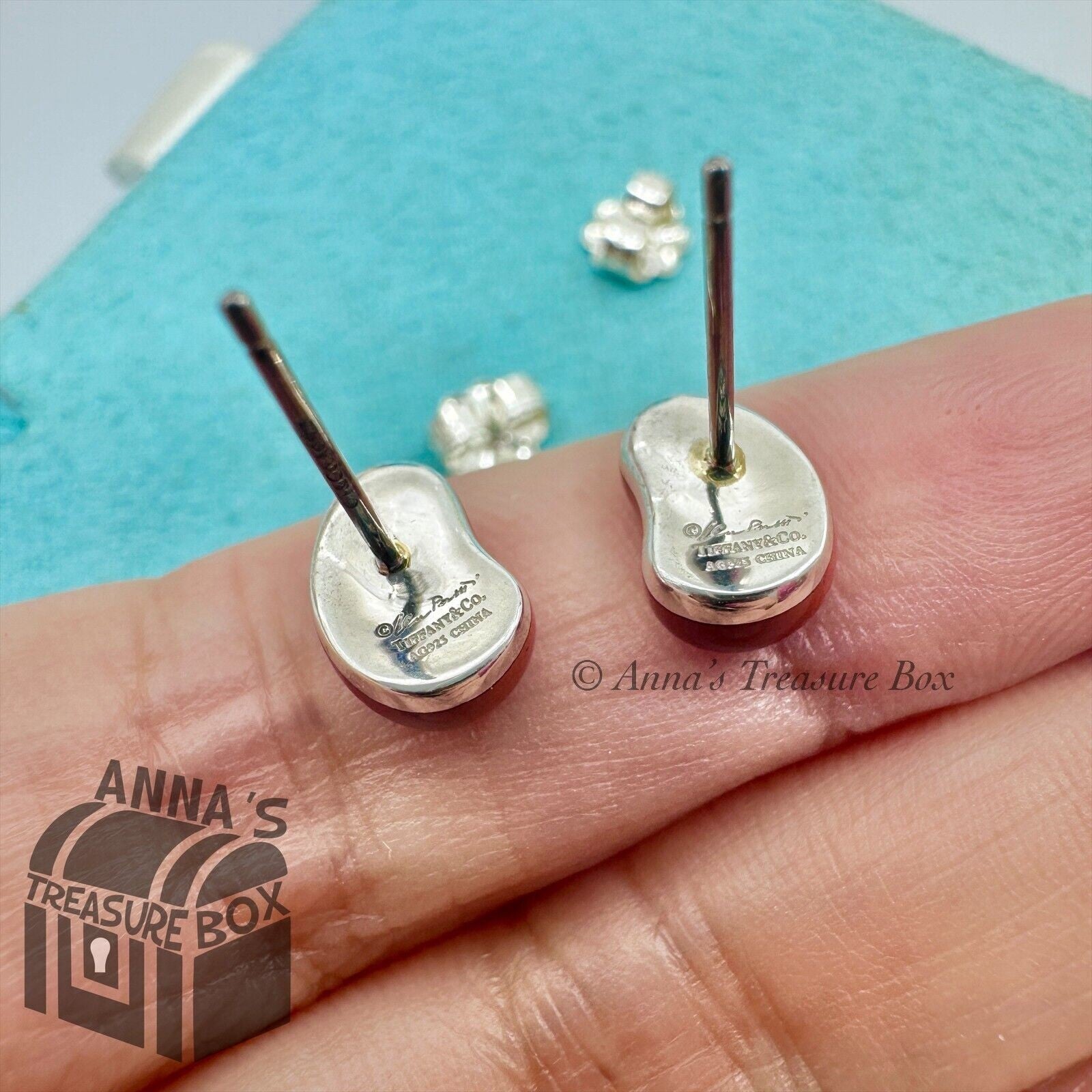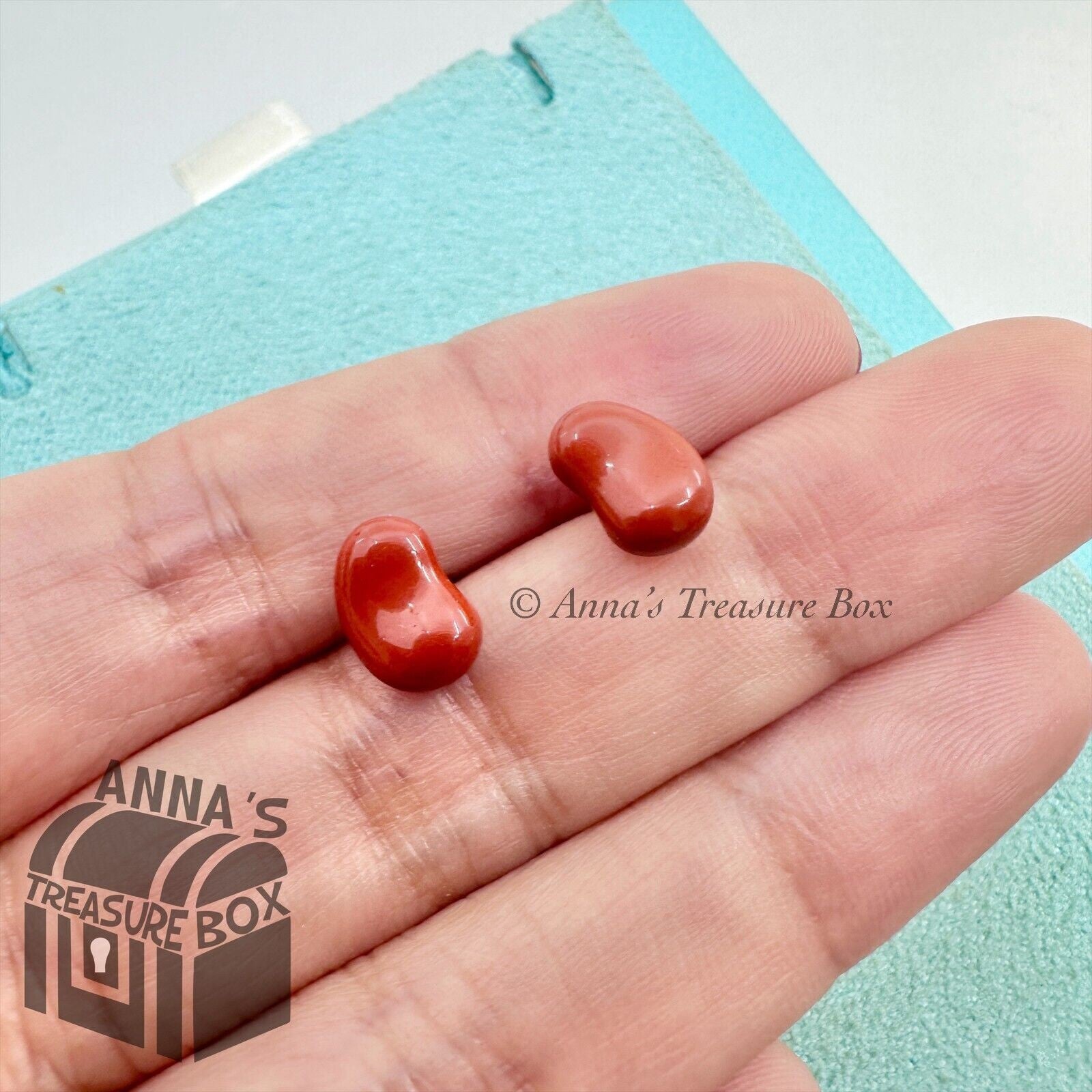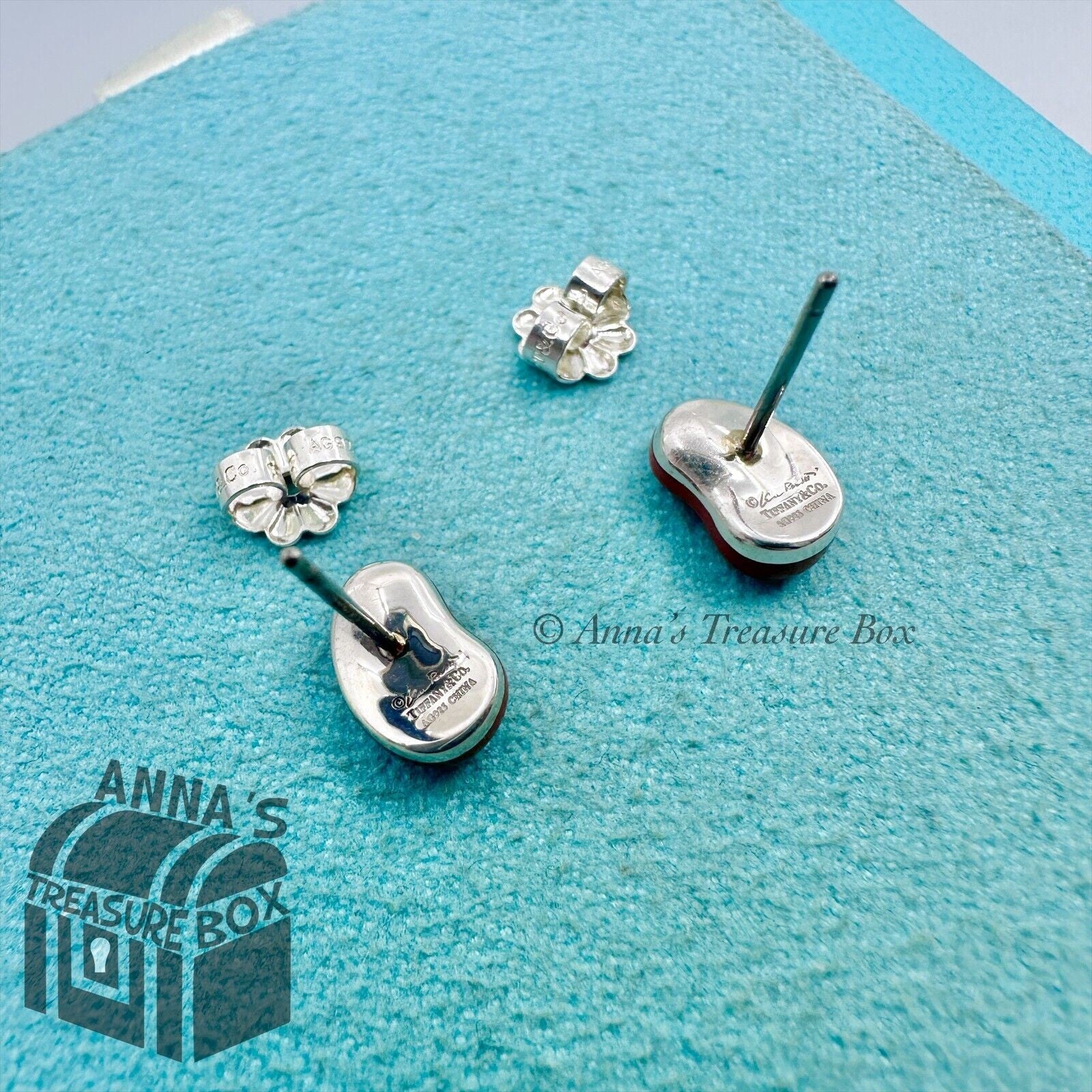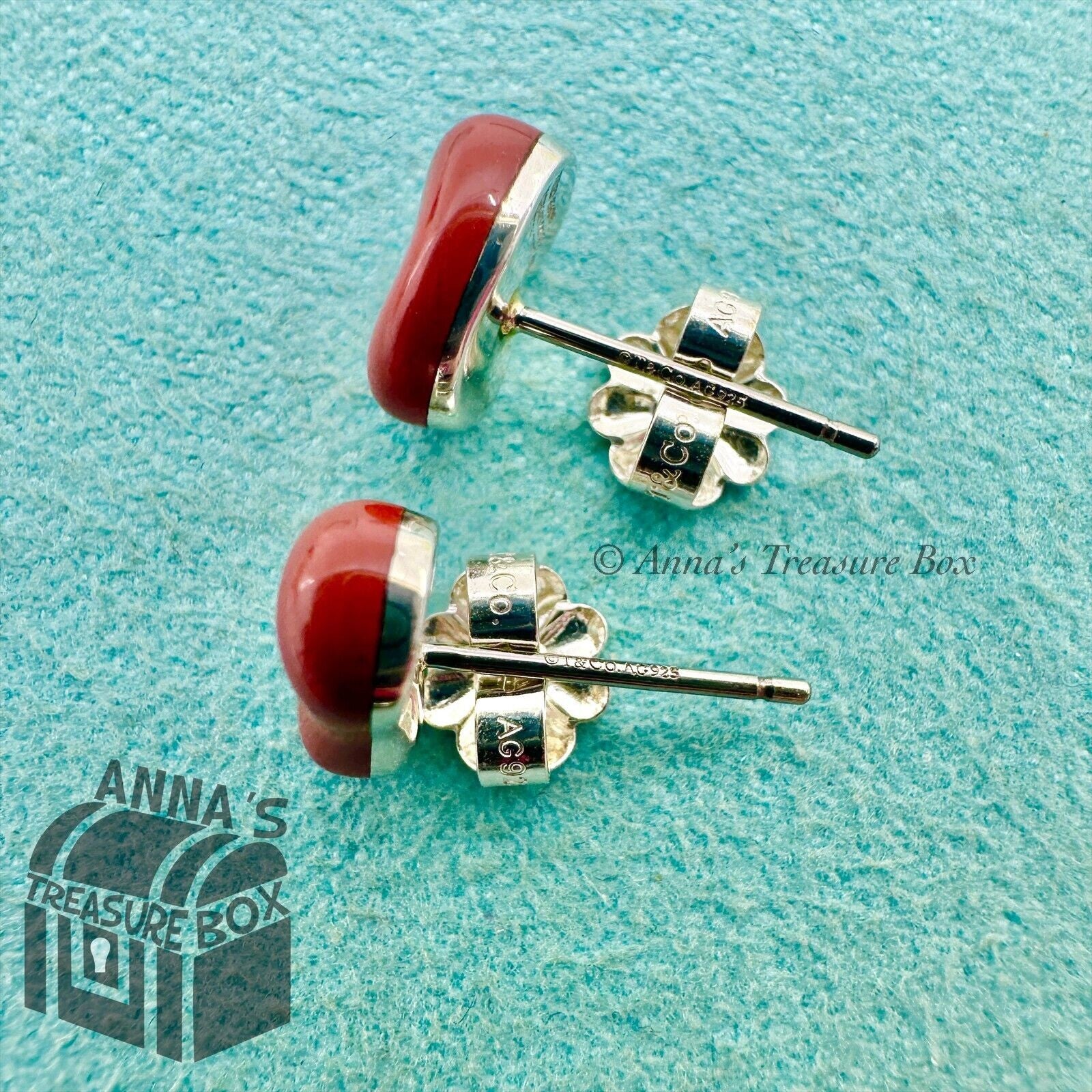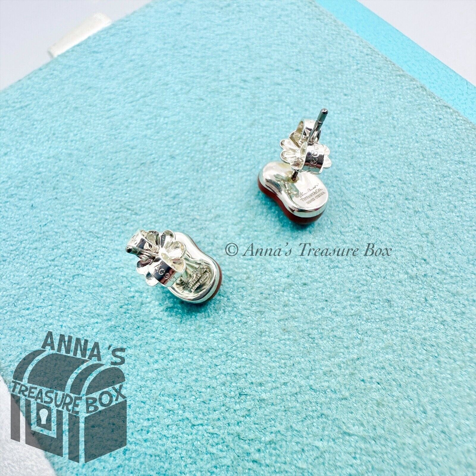Tiffany & Co. 925 Silver Elsa Peretti 9mm Red Jasper Bean Earrings (boxset)