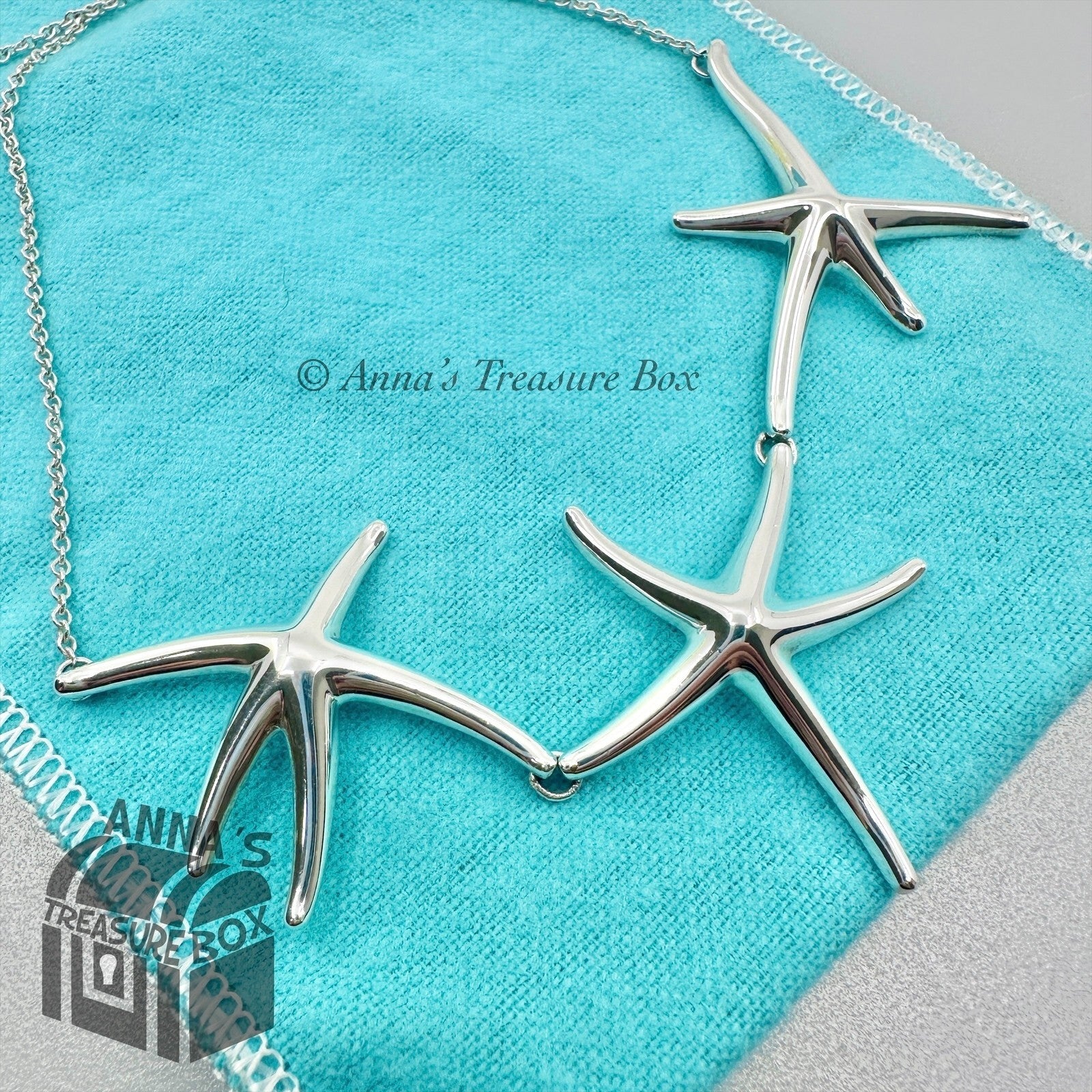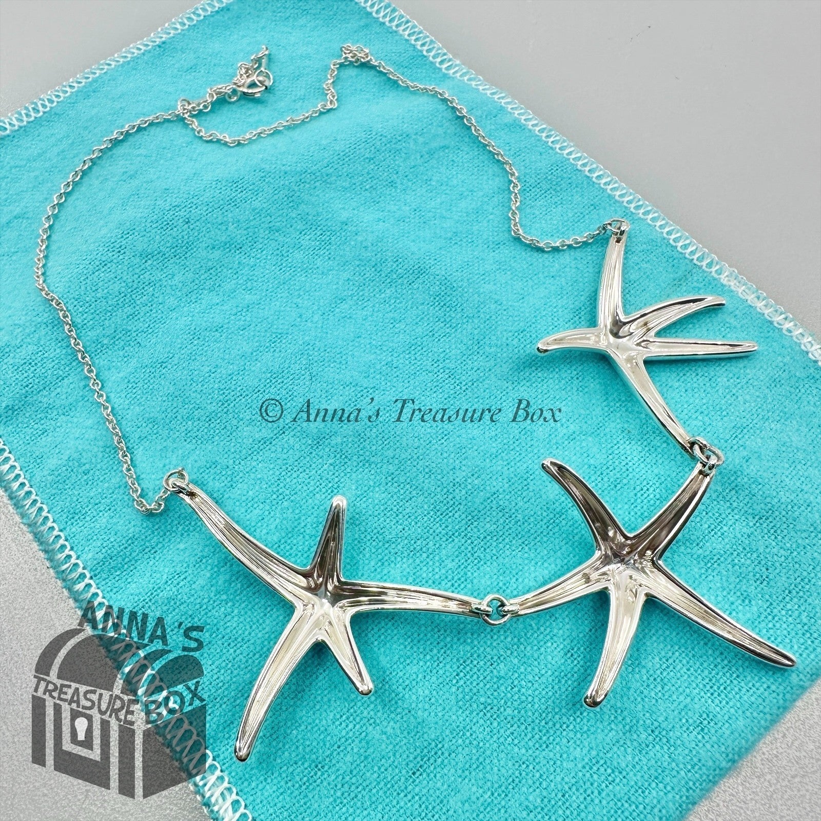 Tiffany & Co. 925 Silver Elsa Peretti Triple Starfish 18" Necklace(bx, pch, rbn)