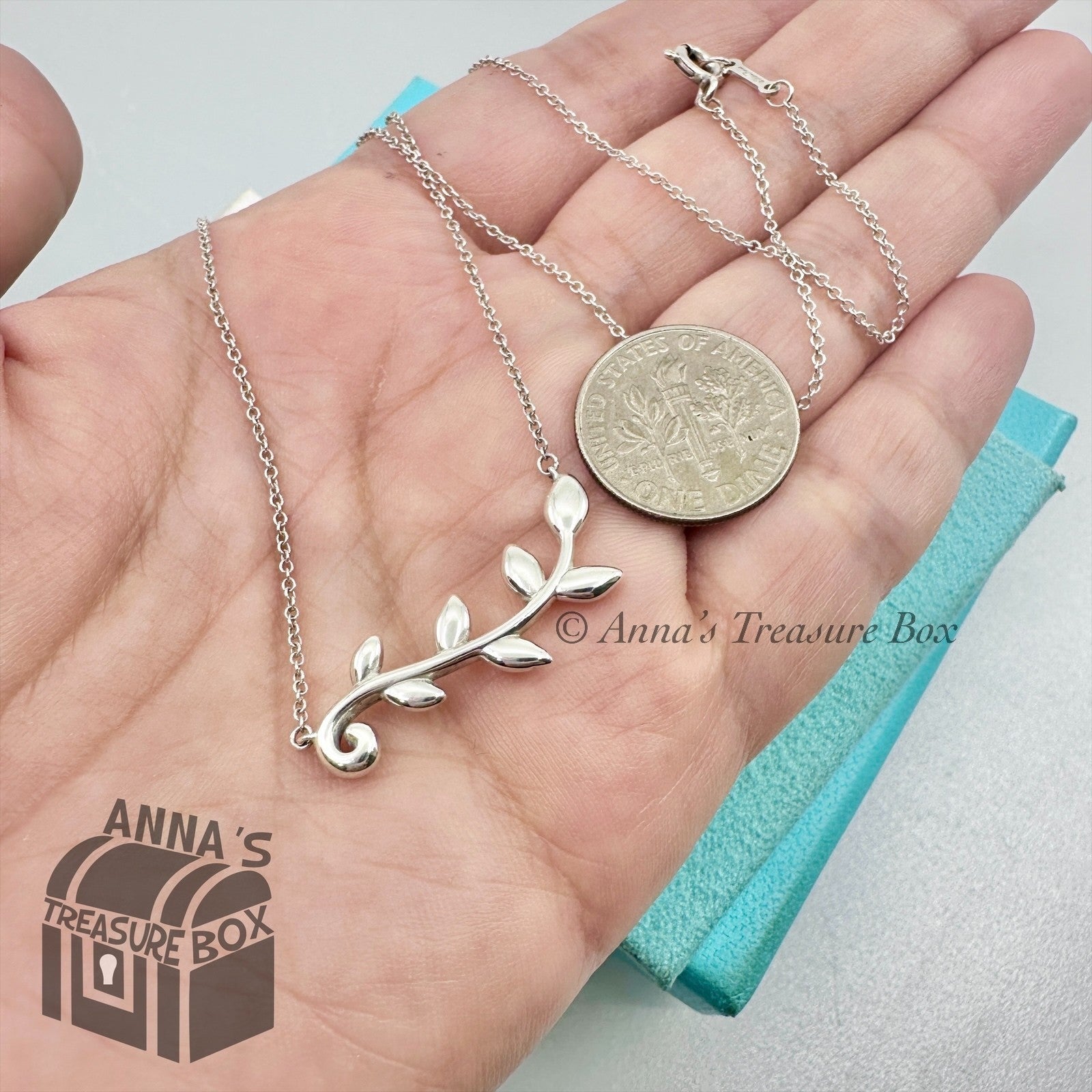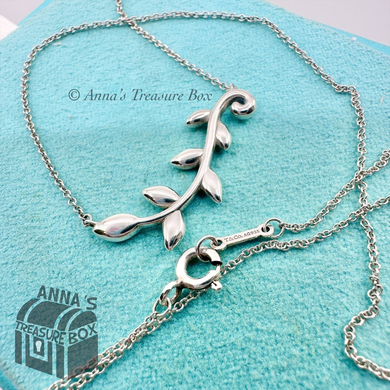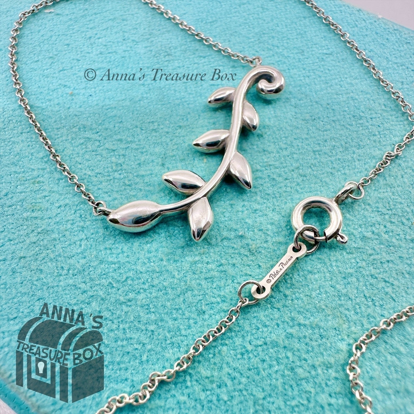 Tiffany & Co. 925 Silver Paloma Picasso Olive Vine Pendant 18" Necklace (pouch)
