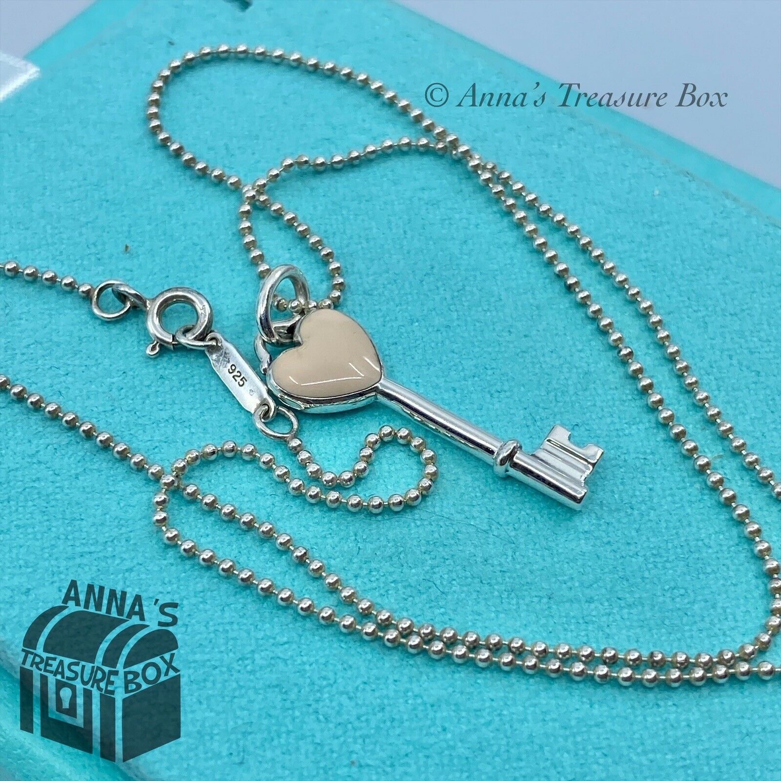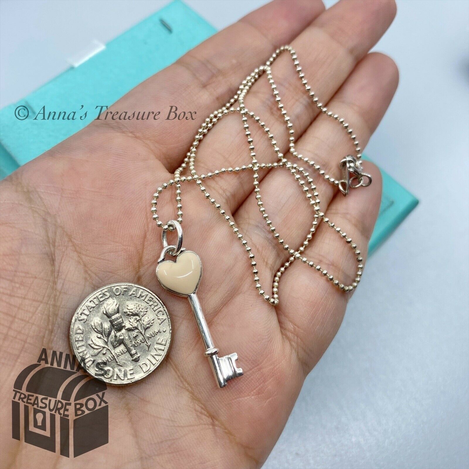 Tiffany & Co. 925 Silver Pink Enamel Heart Key 16" Beaded Necklace (pouch)