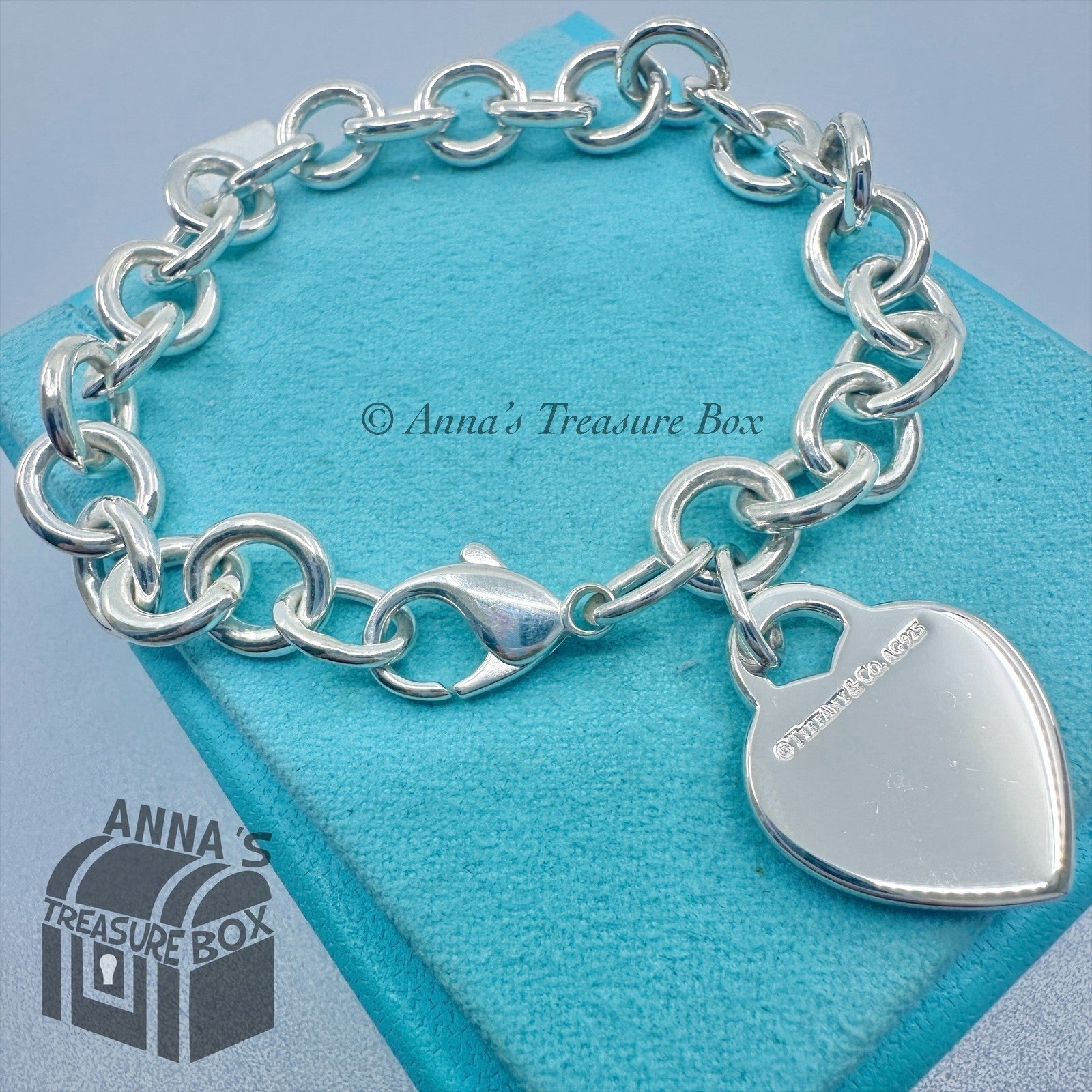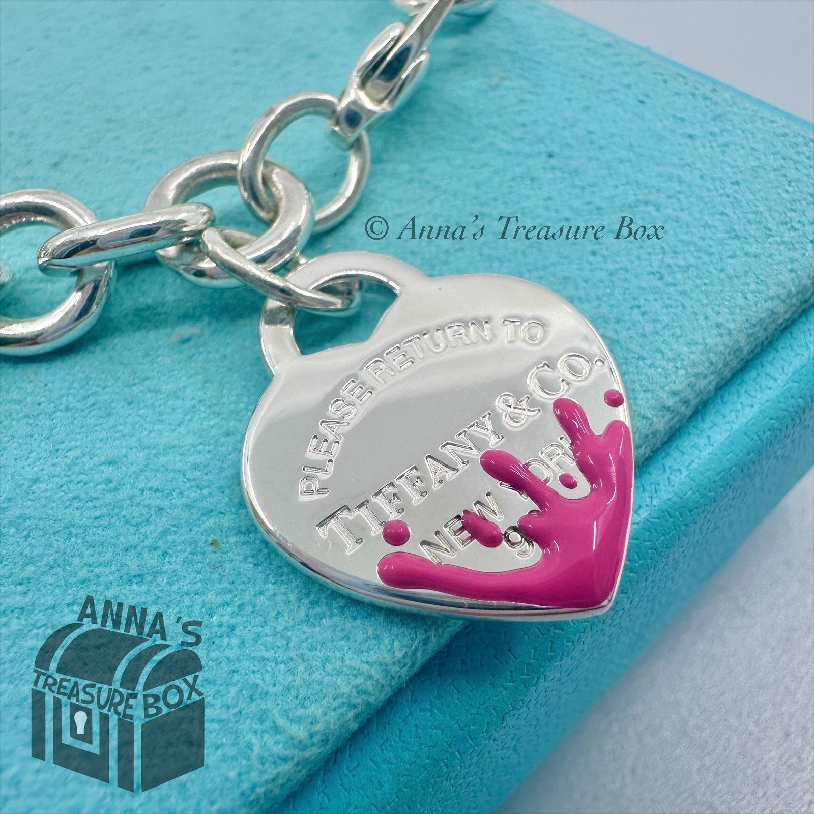 Tiffany & Co. 925 Silver Pink Enamel Splash RTT Heart Tag 8" Bracelet (pouch)