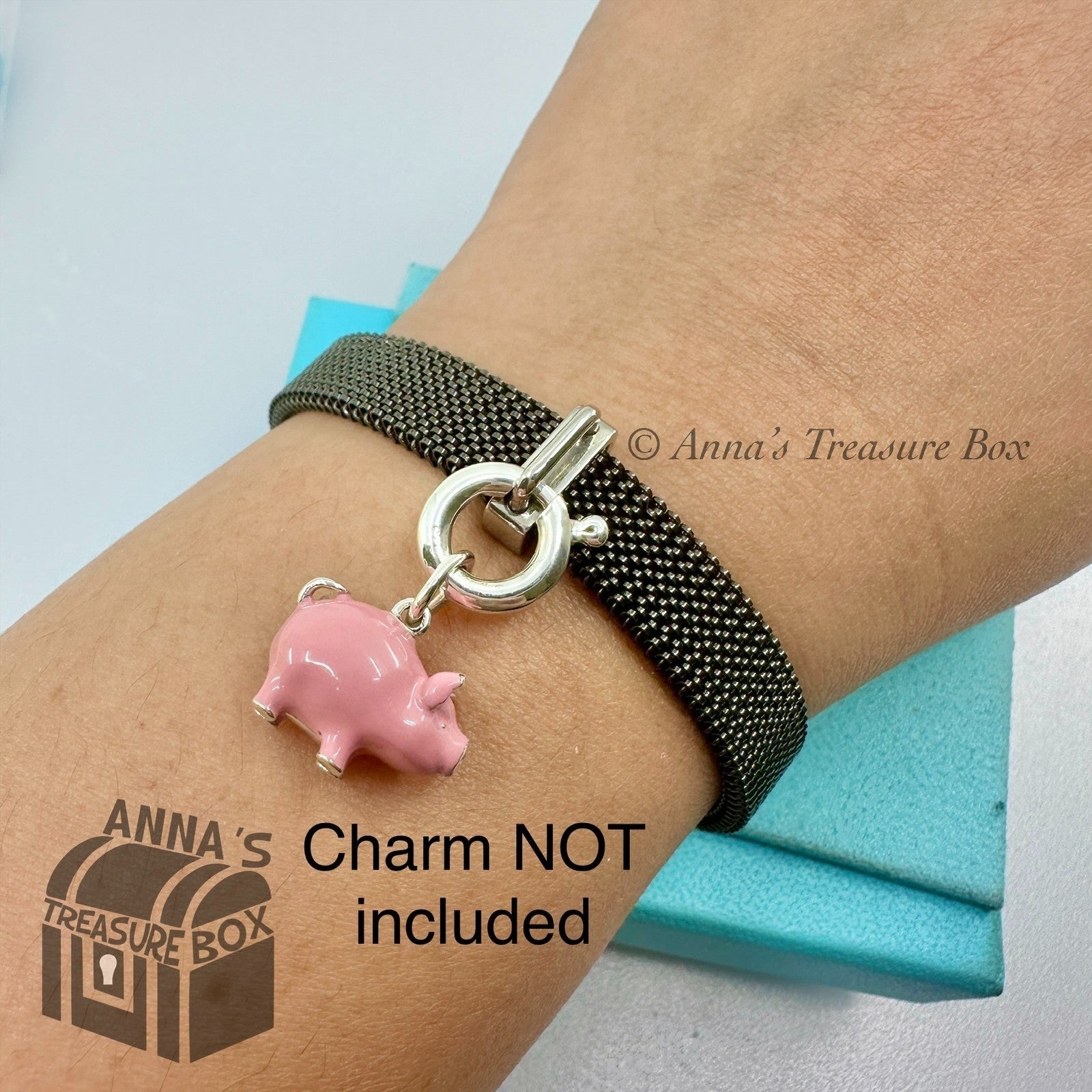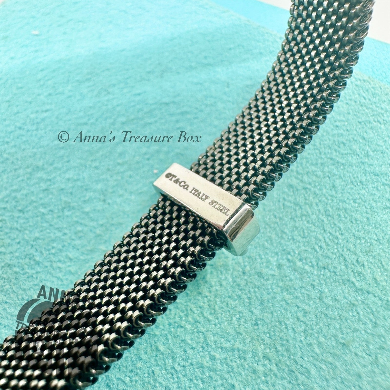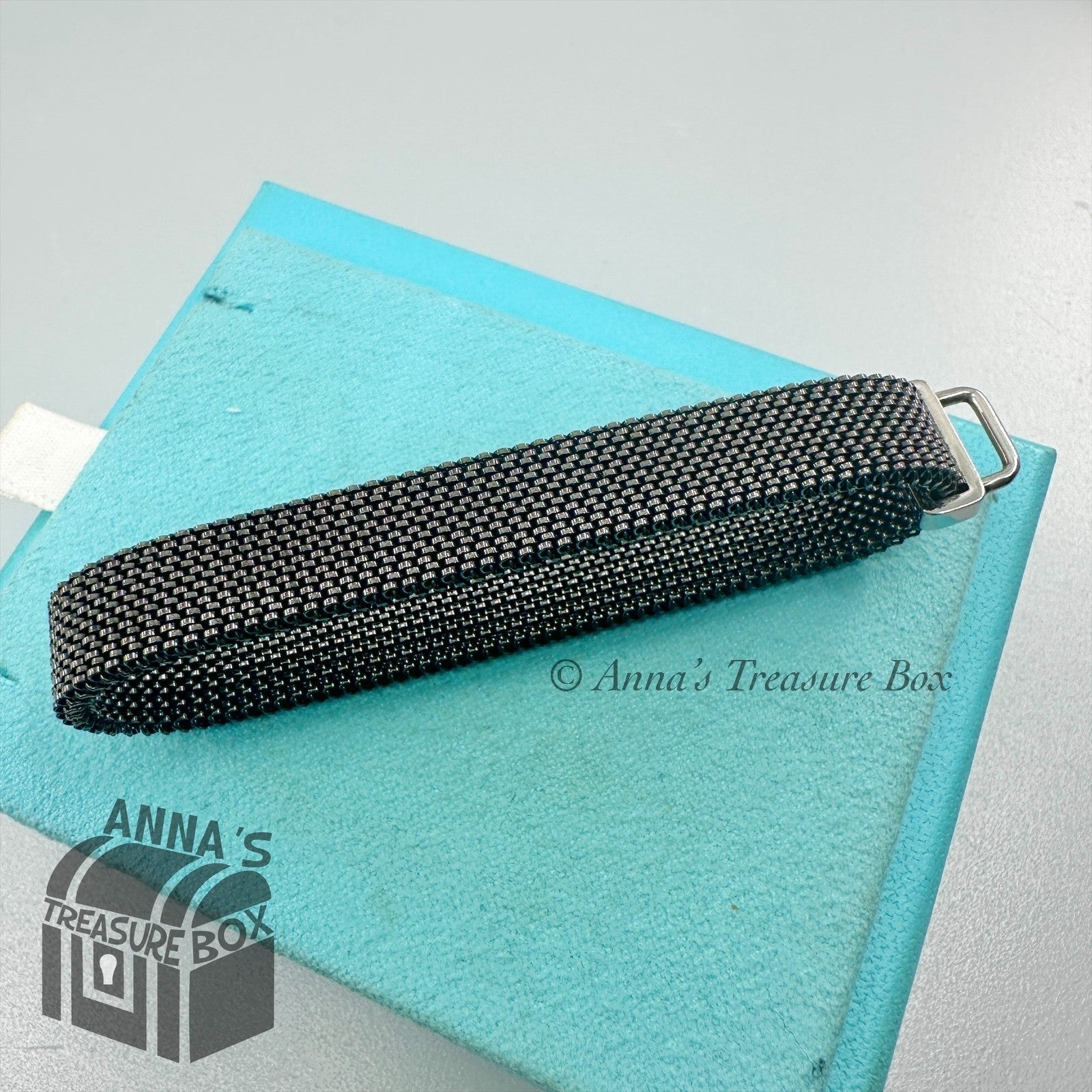 This is an authentic Tiffany & Co. black stainless steel mesh bracelet.