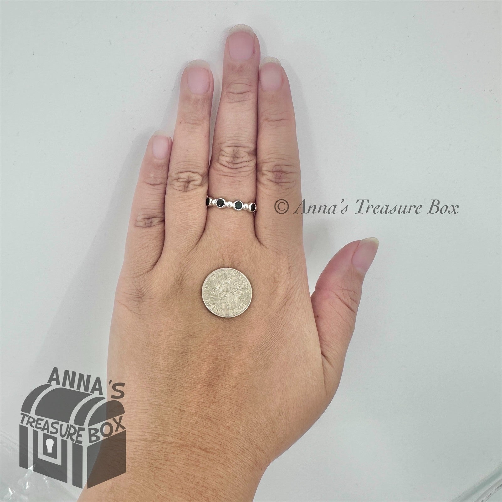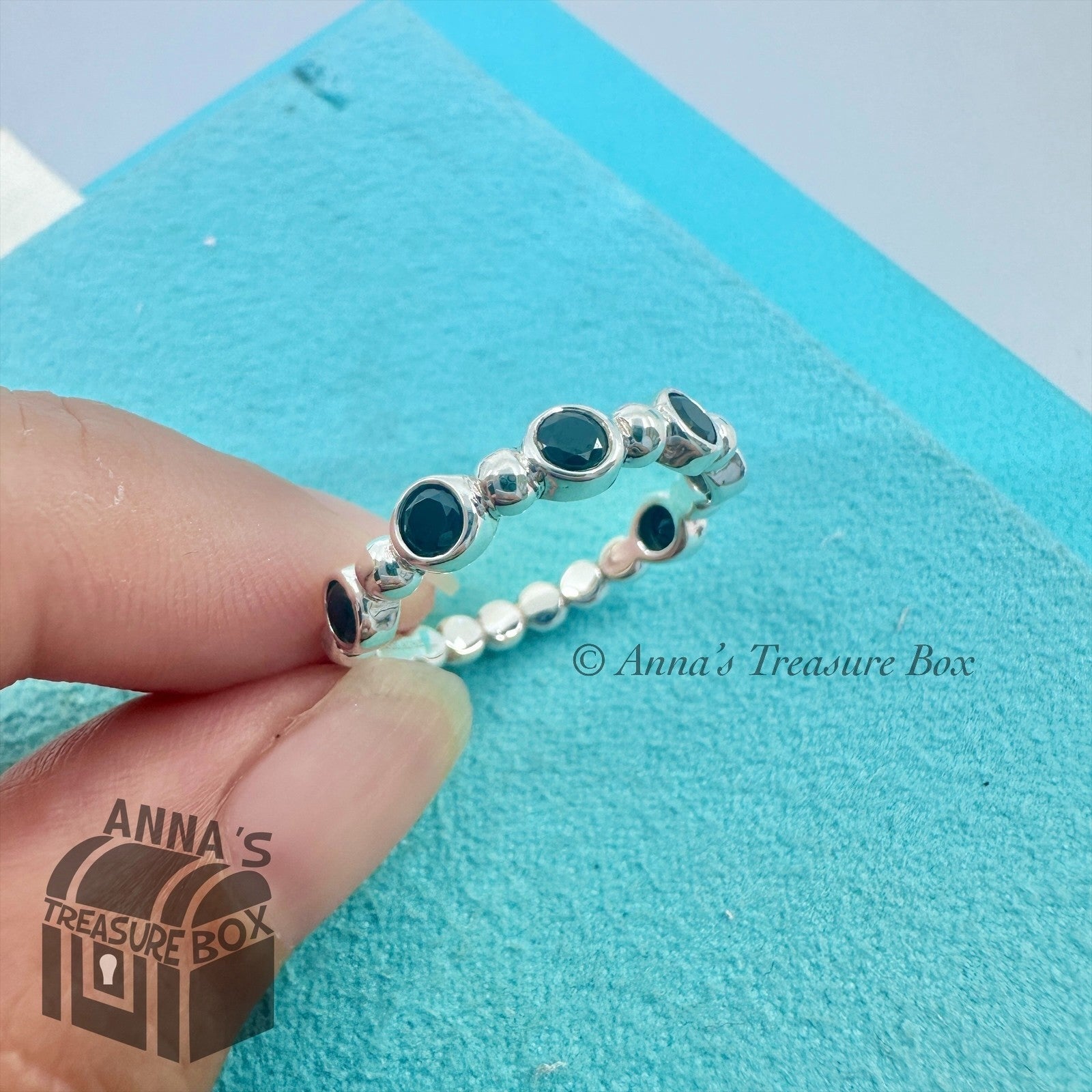 Tiffany & Co. 925 Silver Ziegfeld Black Spinel Bead Band Sz. 6.75 Ring (pouch)