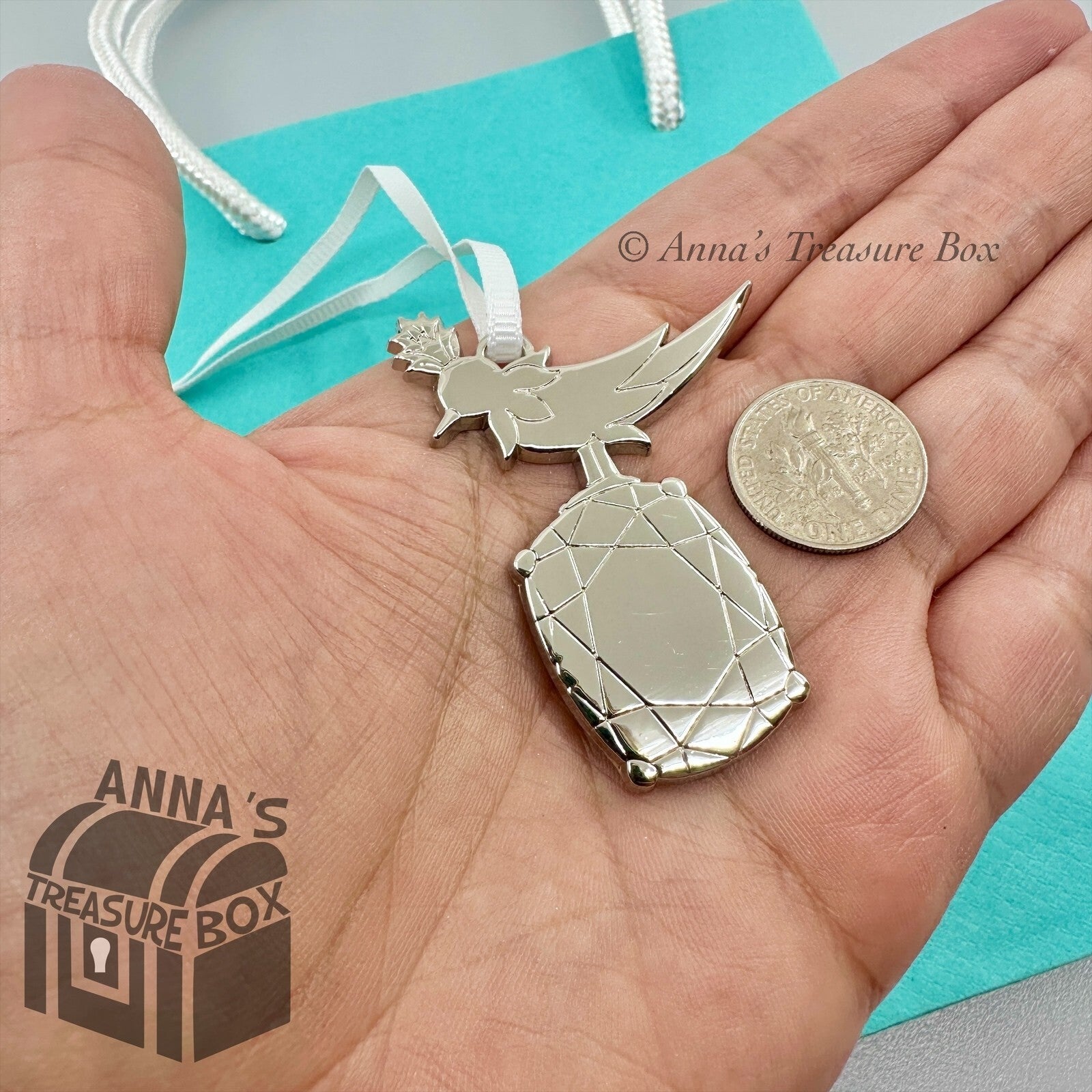 Tiffany & Co. Bird on a Rock Christmas Ornament Charm With Small Bag Silver NEW
